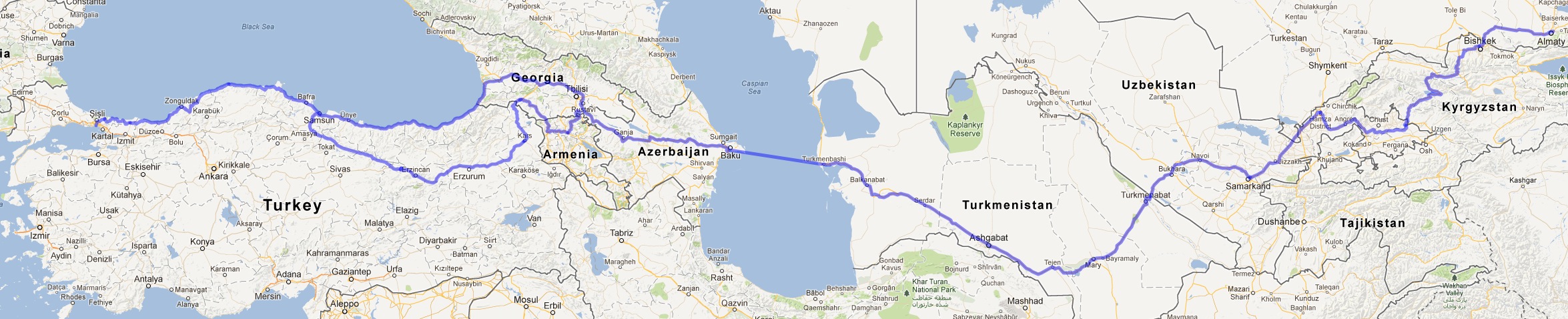 In 2013, my friend John and I set out to cycle from Istanbul to Kazakhstan, a shade less than 4,000 kilometers, in two months time, and in the depth of winter. Through geographies sensible ( snow bound mountain ranges, ancient rivers and inland seas ) and not ( jigsaw borders and boundaries fortified in bureaucracy ), we moved east from the edge of Europe to the center of Asia. We relied on the generosity of peoples of steppe, desert, and mountain, as well as scattered expats and the high tide traces of the great Russian and Soviet empires.